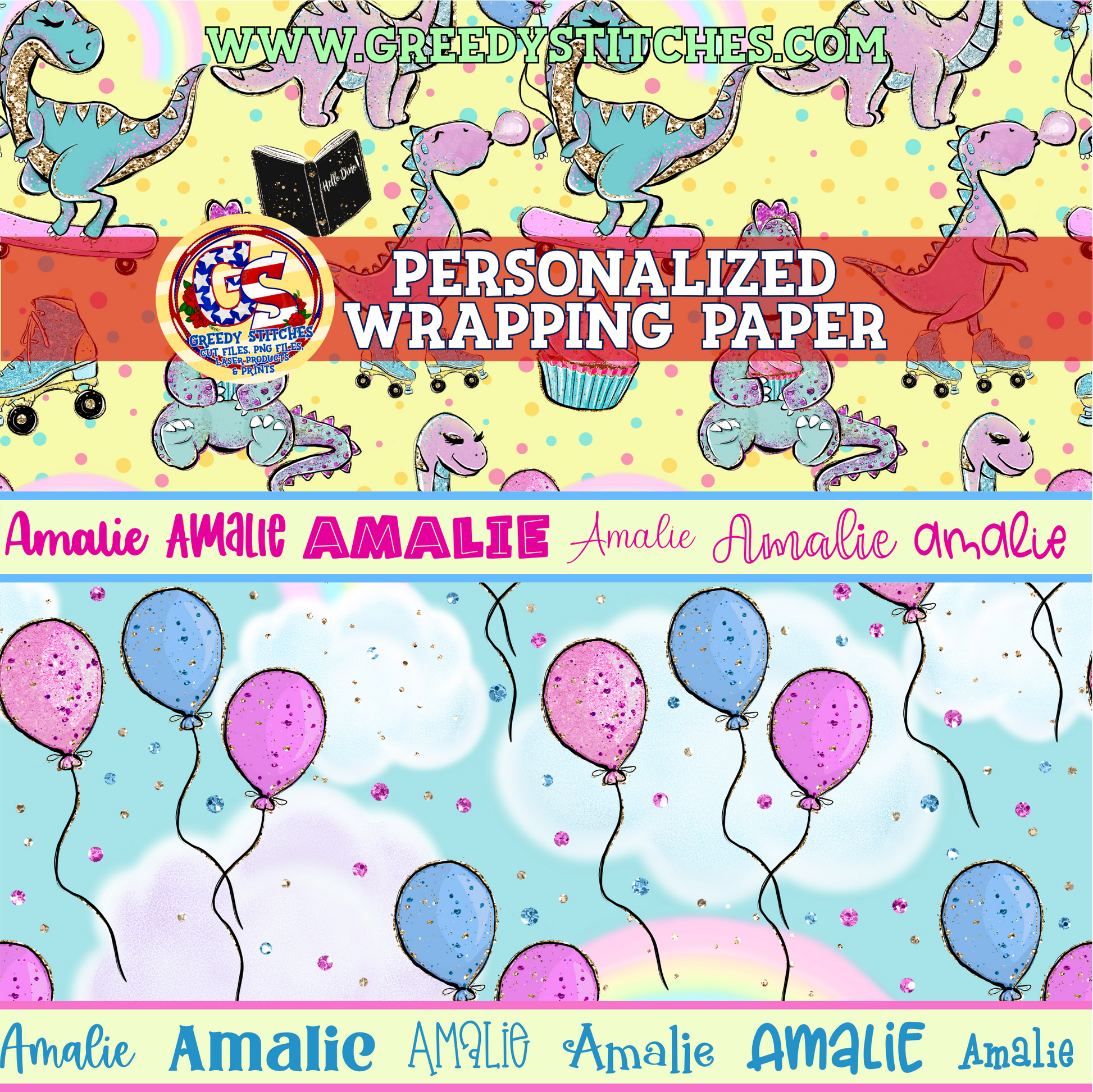 36" Birthday Dinosaur Personalized Wrapping Paper