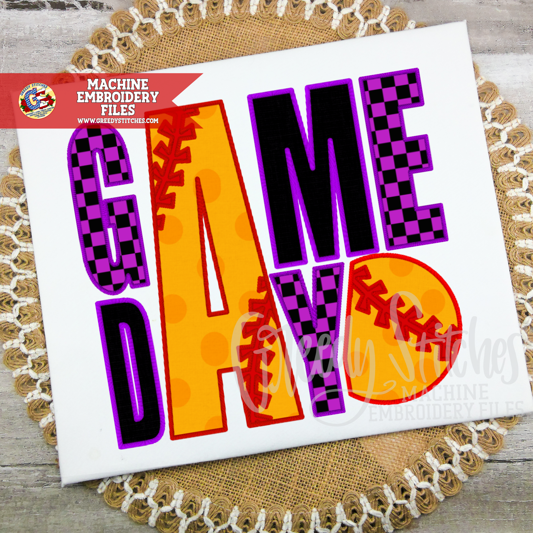 Baseball Softball Game Day Satin Stitch Applique Machine Embroidery Design