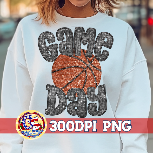 Basketball Game Day Black Faux Embroidery Sequins PNG