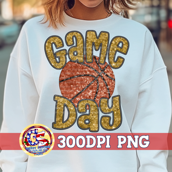Basketball Game Day Gold Faux Embroidery Sequins PNG