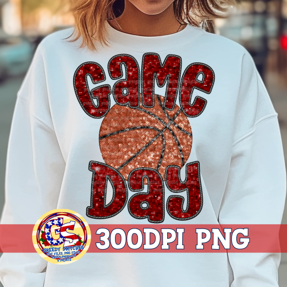 Basketball Game Day Maroon Faux Embroidery Sequins PNG