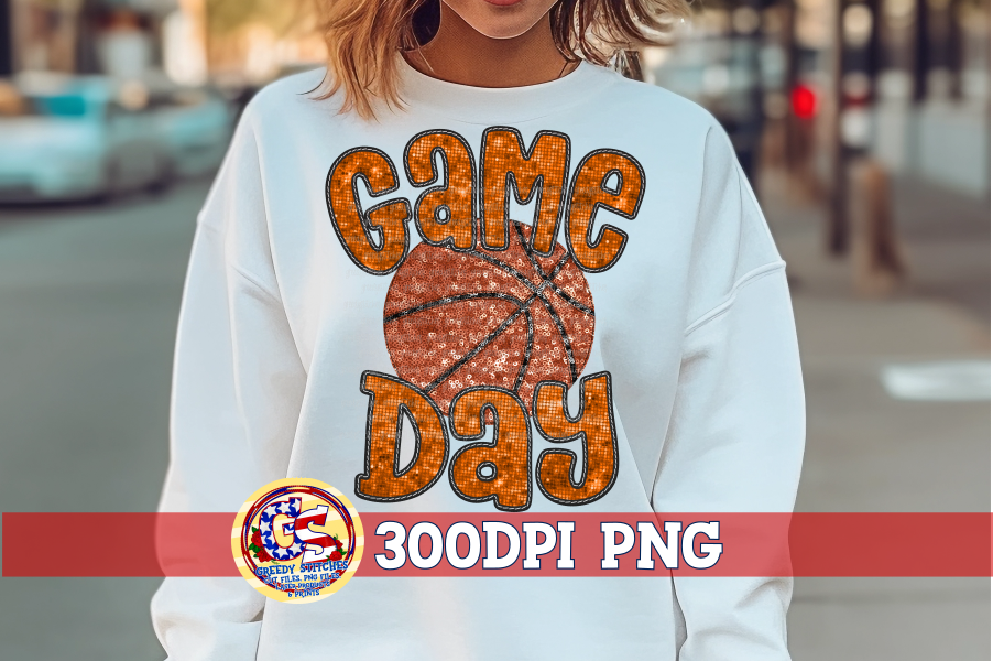 Basketball Game Day Orange Faux Embroidery Sequins PNG