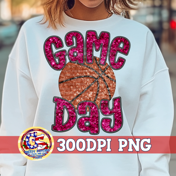 Basketball Game Day Pink Faux Embroidery Sequins PNG