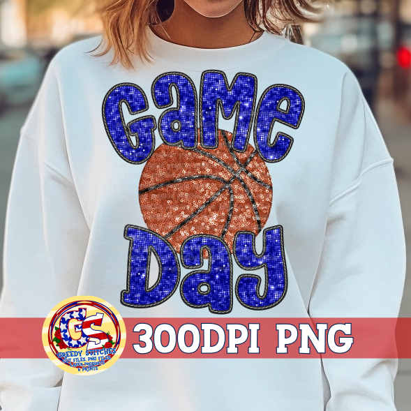 Basketball Game Day Royal Faux Embroidery Sequins PNG