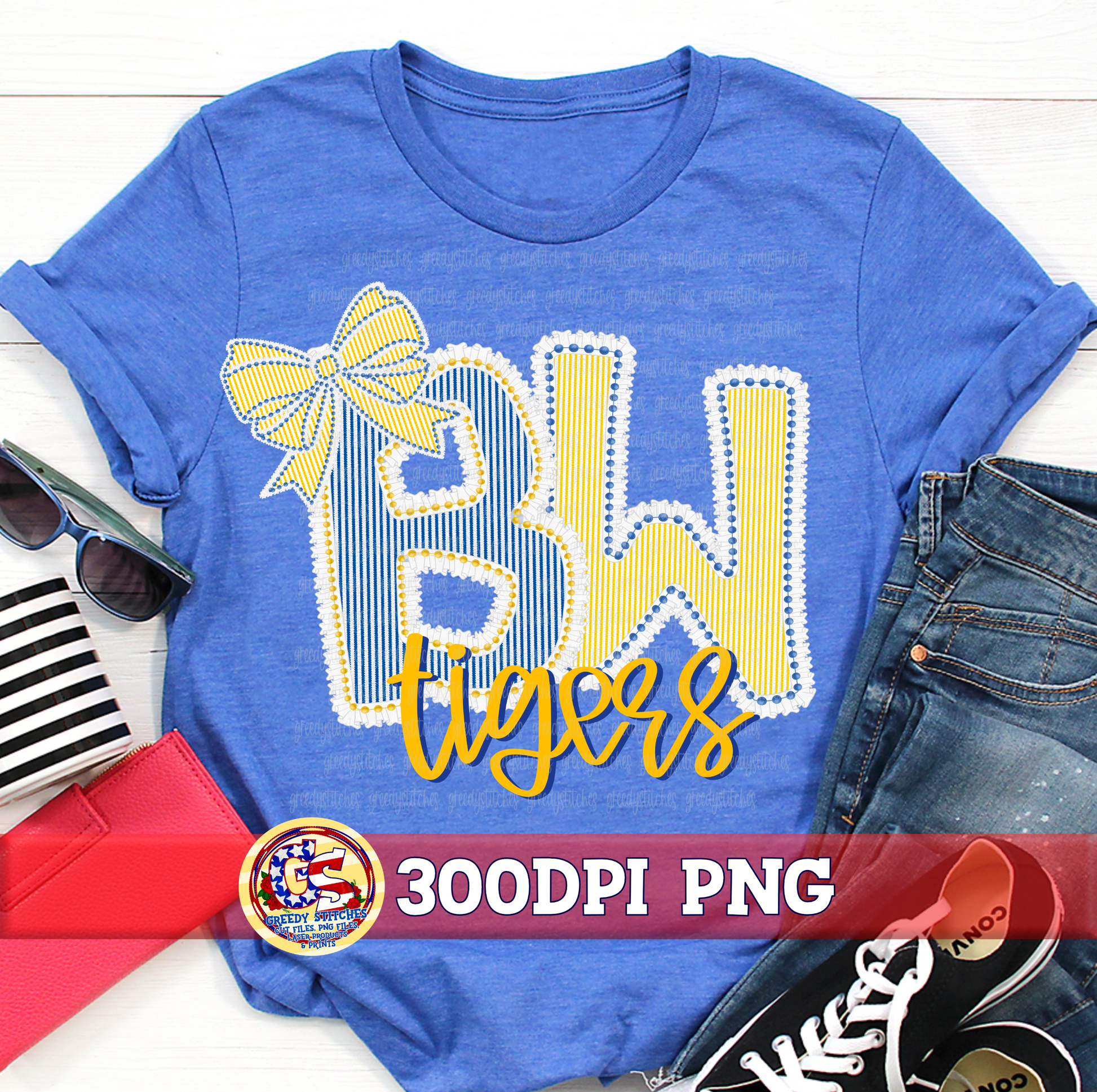 2 PNG files with transparent background, saved at a minimum of 3600 x3600 px. One with the school and mascot, one with bow. You can use with or without bow.