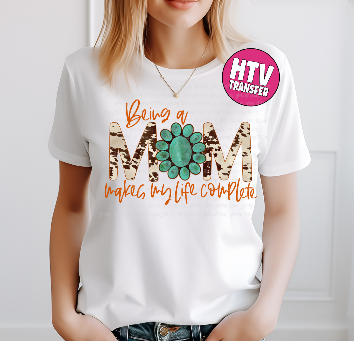 Being a Mom Makes My Life Complete Turquoise Western HTV Transfer