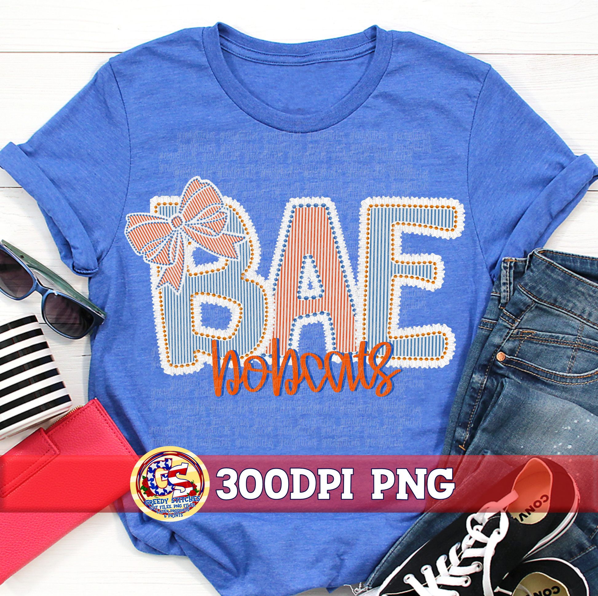 2 PNG files with transparent background, saved at a minimum of 3600 x3600 px. One with the school and mascot, one with bow. You can use with or without bow.
