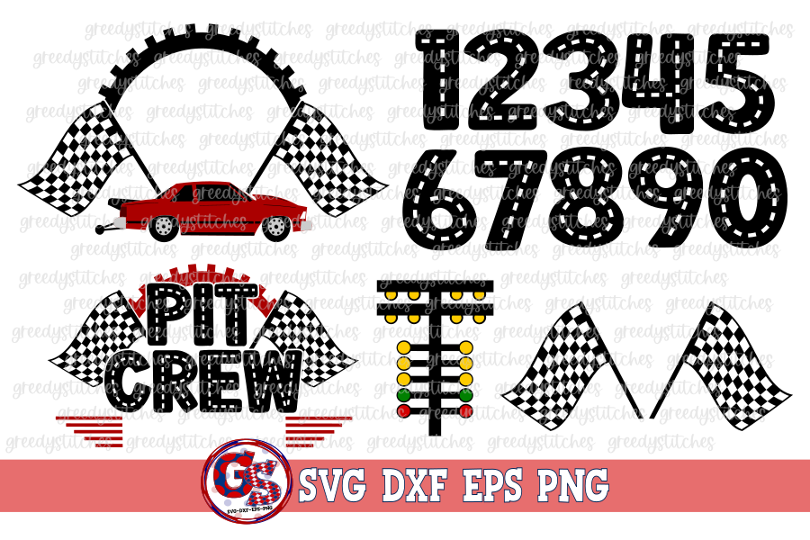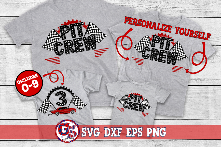 1 Pit Crew design (you can personalize yourself with your own fonts)