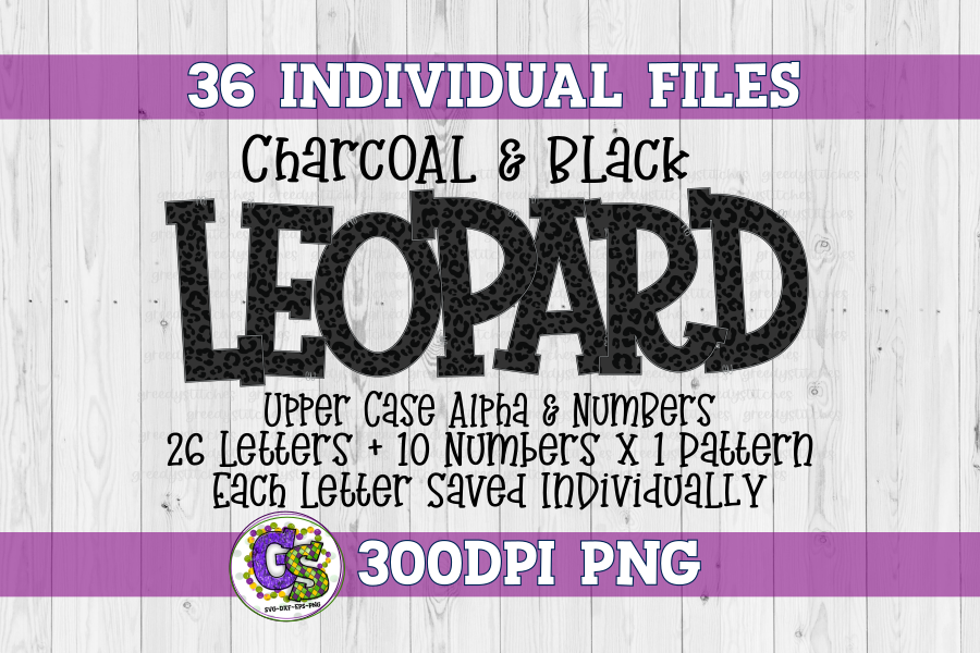 Black and Charcoal Leopard Alpha & Number Set PNG