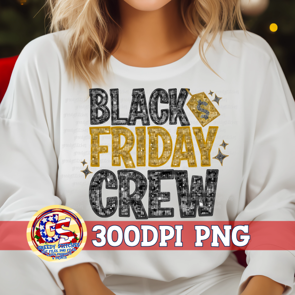 Black Friday Crew Faux Embroidery Sequins PNG for Sublimation