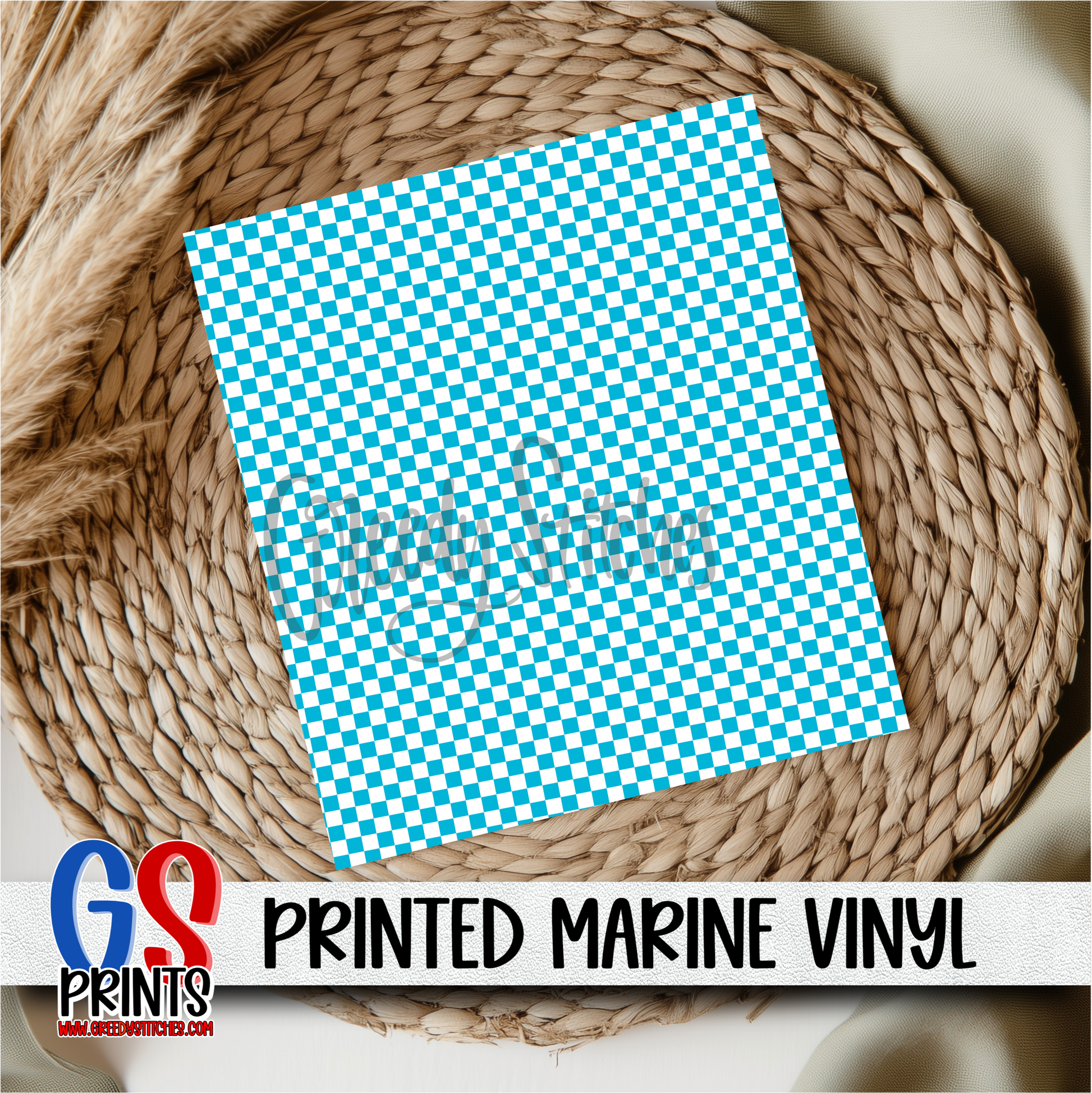 This marine grade upholstery vinyl is printed here, in house!