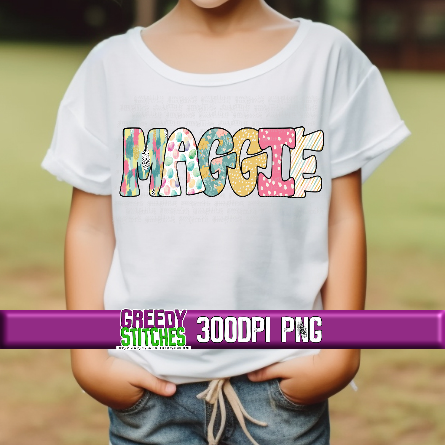 You will receive one .zip file that will include uppercase letters and numbers 0 to 9 and extras (if applicable) for 6 different color/patterned alphas. All are individual PNG files. All PNGs have transparent background. Letters are saved at 300dpi and are around 5" tall.