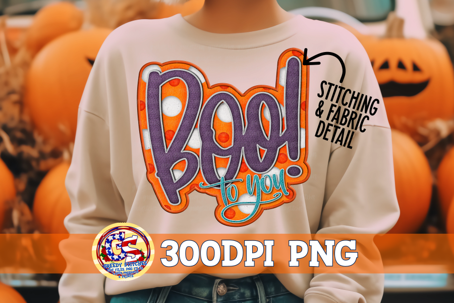 Boo to You! PNG For Sublimation---Faux Embroidery PNG