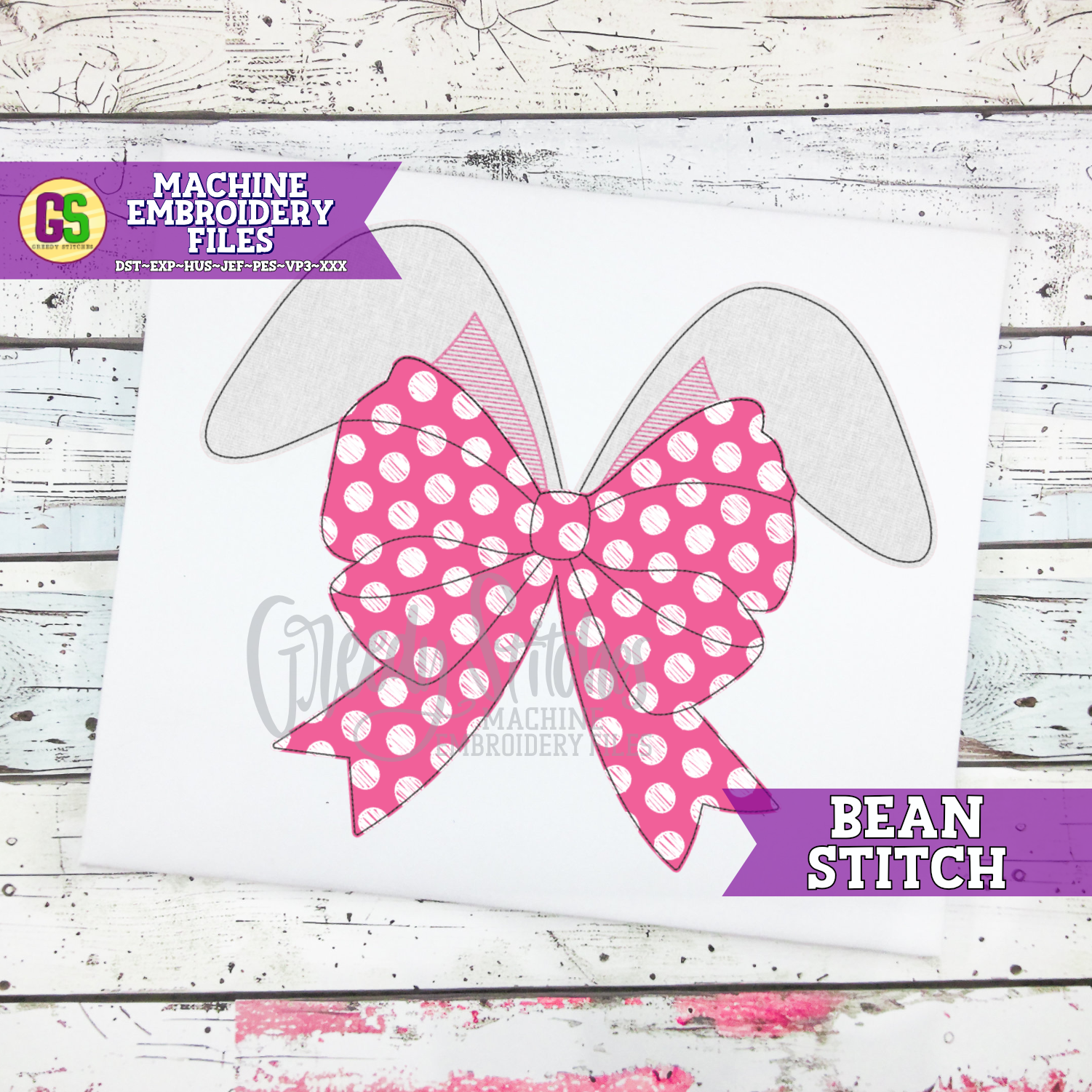 Bunny Ears with Bow Bean Stitch Machine Embroidery Design