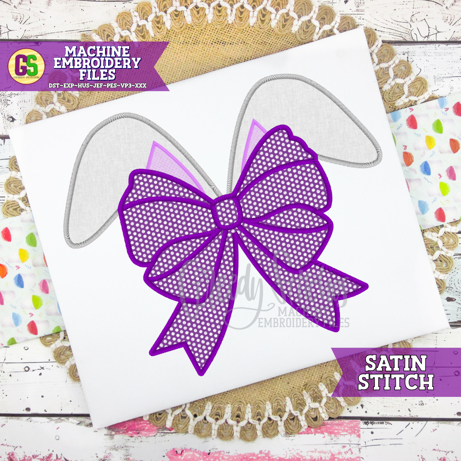 Bunny Ears with Bow Satin Stitch Machine Embroidery Design