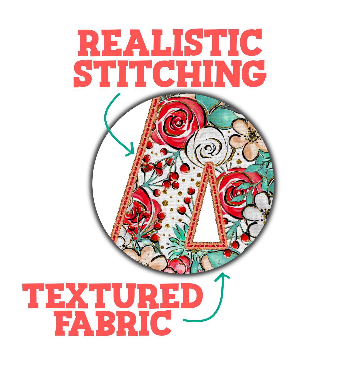 Not only does this alpha & number set show off a pretty neat faux embroidery stitch effect (whoa! double at that--satin and single run), but it also features a textured fabric look consistent with cotton materials commonly used for applique.