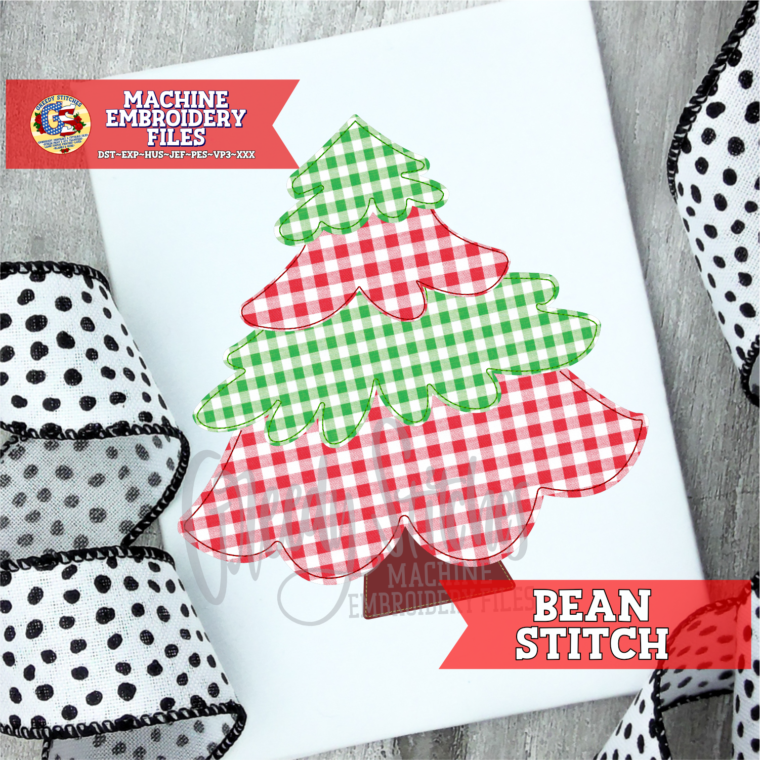 Christmas Tree Bean Stitch Applique Machine Embroidery Design