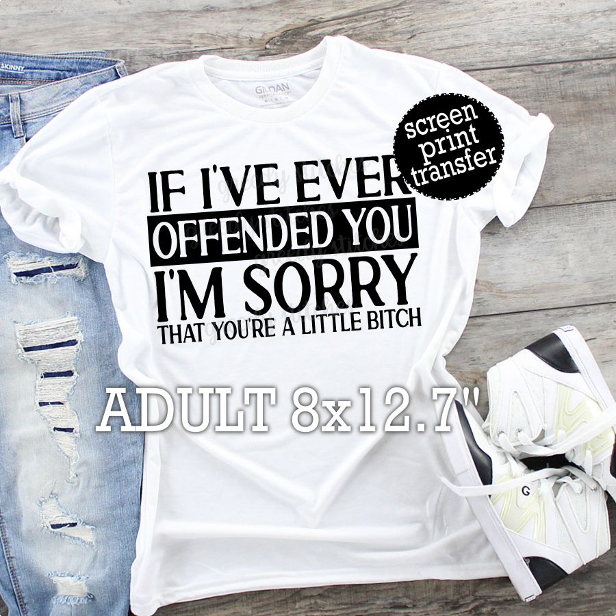 If I've Ever Offended You I'm Sorry You're a Little Bitch ADULT Screen Print Transfer