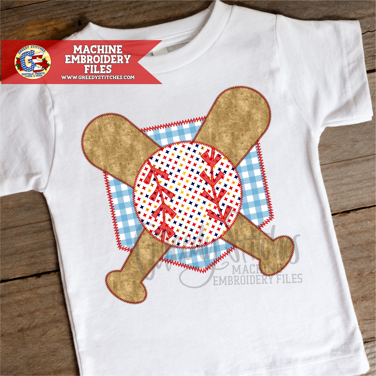 Crossed Bats Ball and Home Plate Zigzag Applique Machine Embroidery Design