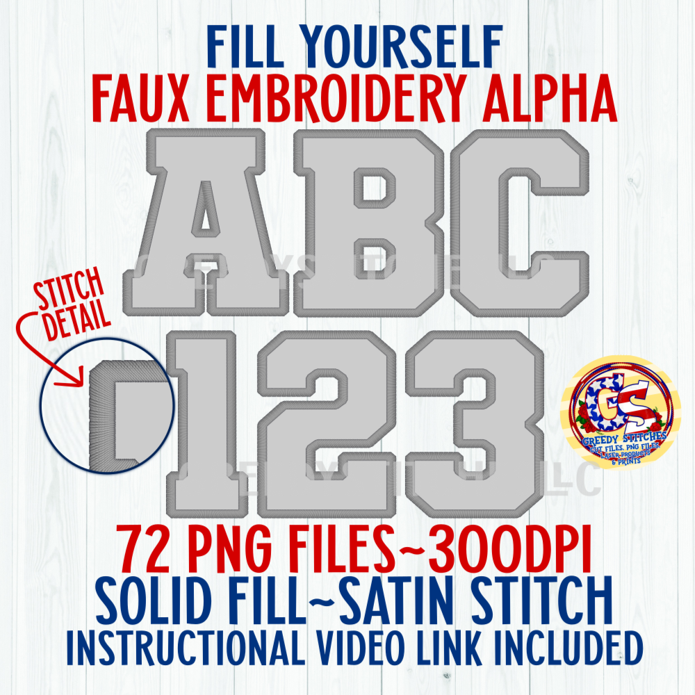 DIY Faux Embroidery Varsity Alpha & Number Pack PNG Sublimation