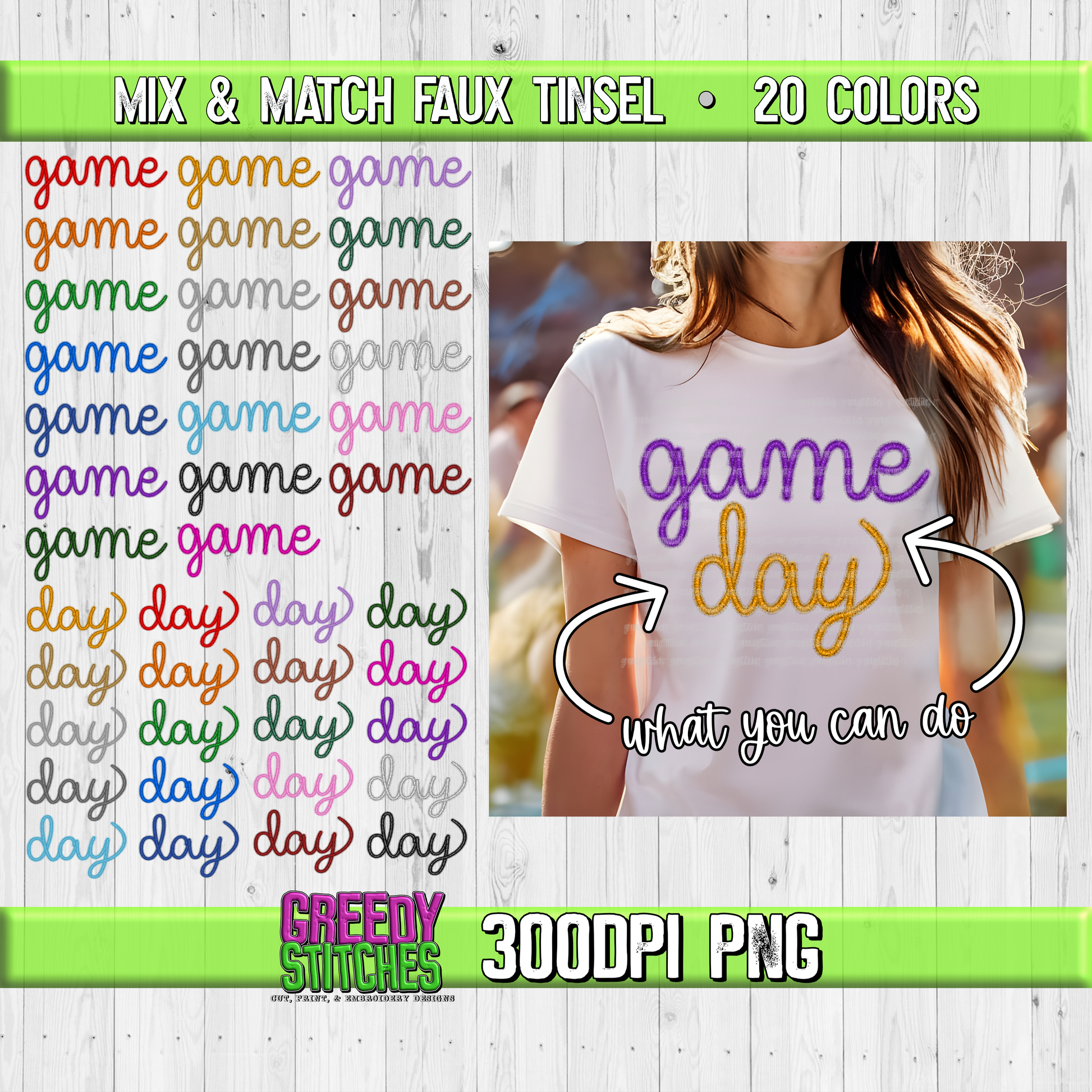 Faux Tinsel Game Day PNG Bundle