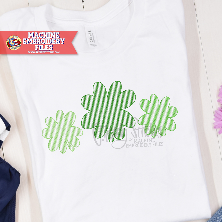 Four Leaf Clover Trio Sketch Machine Embroidery Design