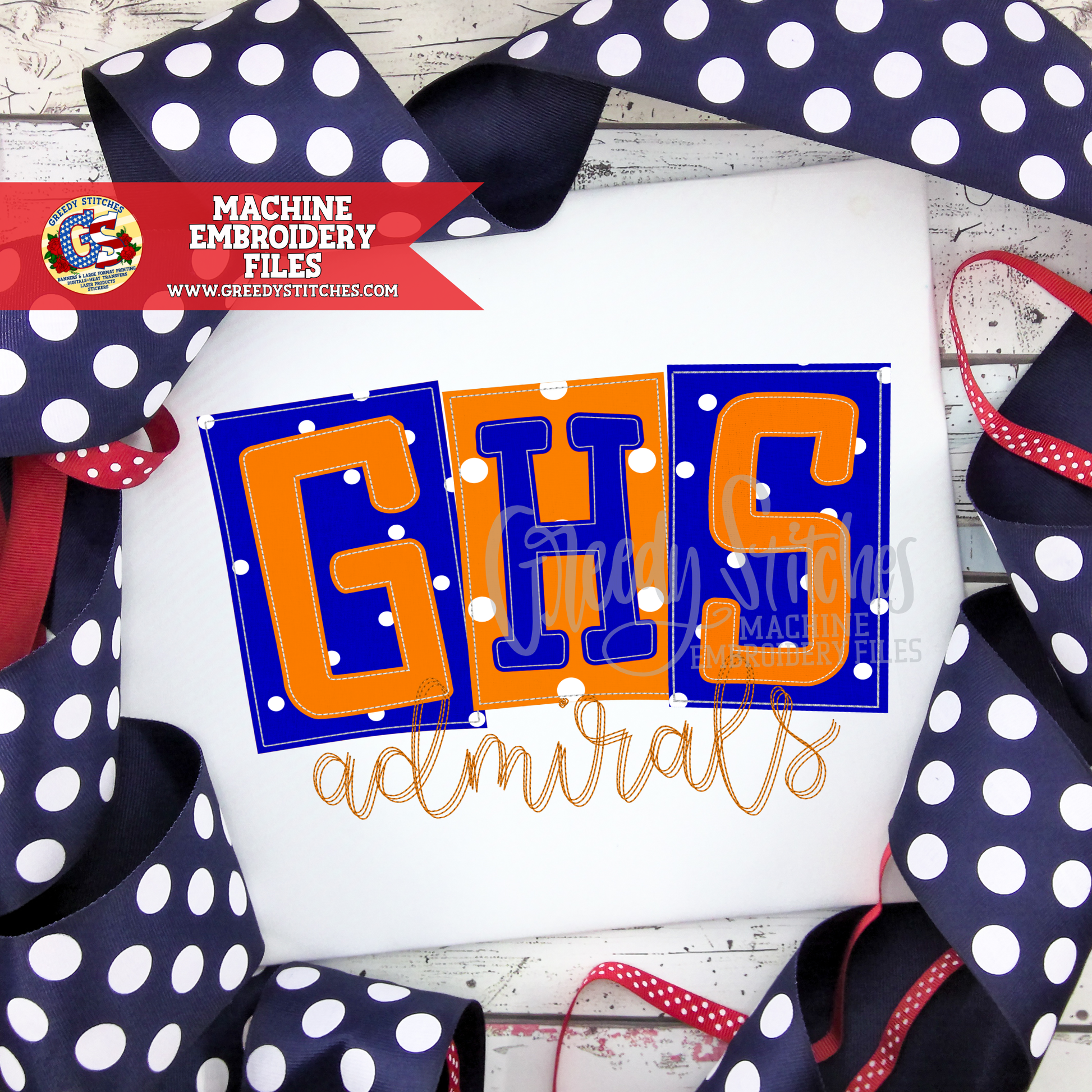 GHS Admirals Bean Stitch Applique Machine Embroidery Design - Gulfport High School Admirals