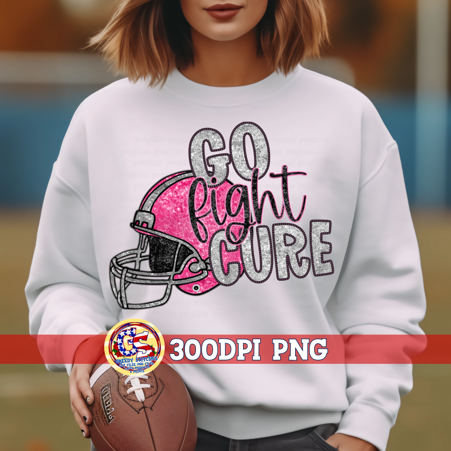 Go Fight Cure Breast Cancer Football Faux Embroidery and Sequins PNG