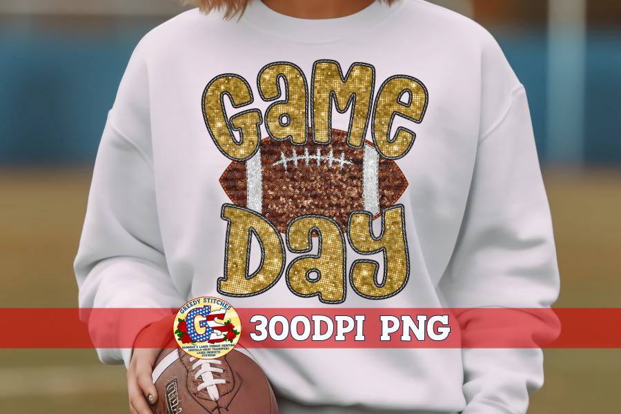 Gold Game Day Football Faux Embroidery Sequins PNG