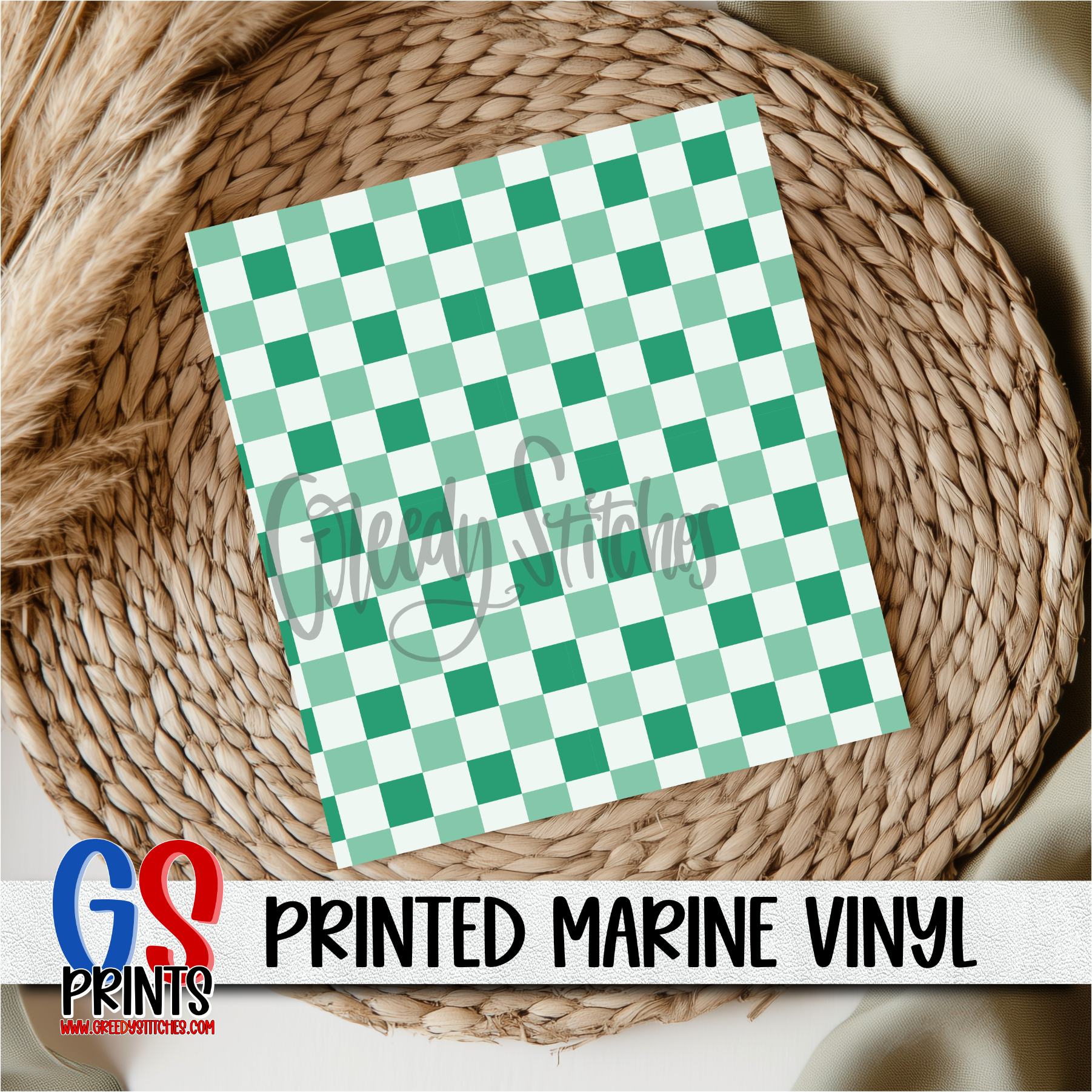 Green Christmas Checker Marine Vinyl