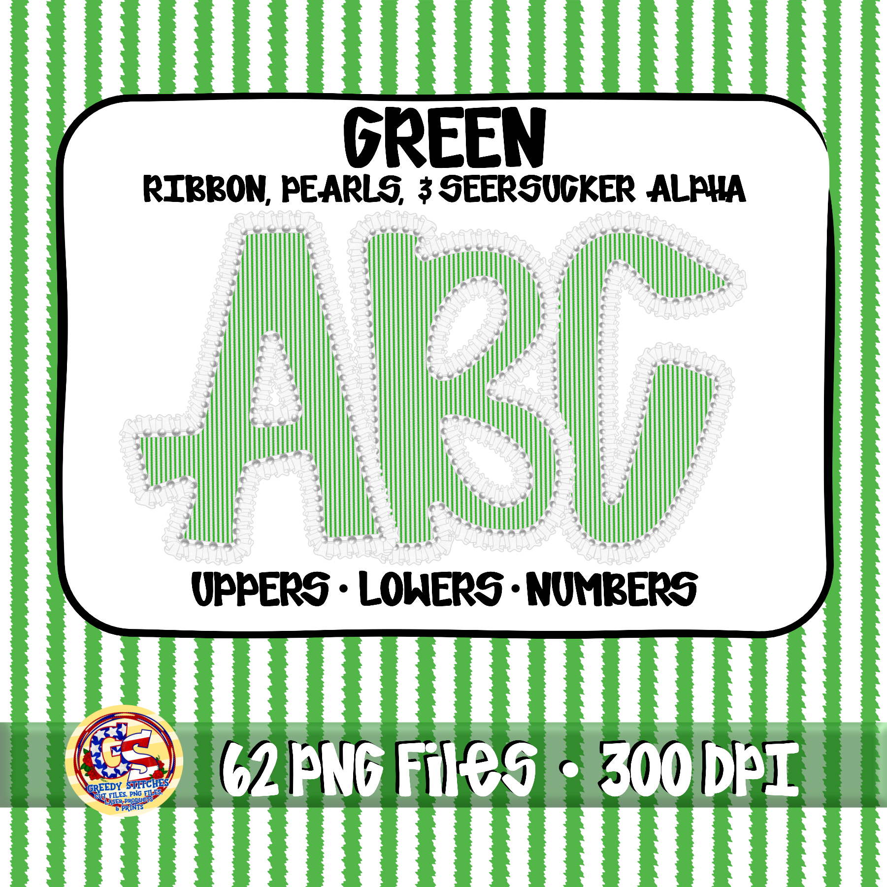 Green Ruffles, Pearls, Seersucker Alpha PNG -Seersucker Alpha