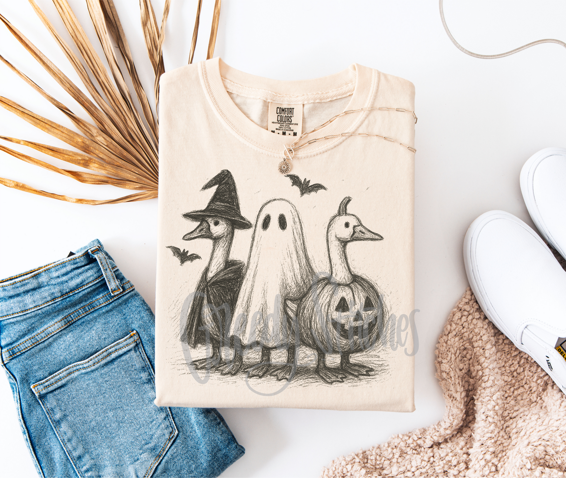 Halloween Geese Pencil Sketch DTF Transfer - Halloween Goose