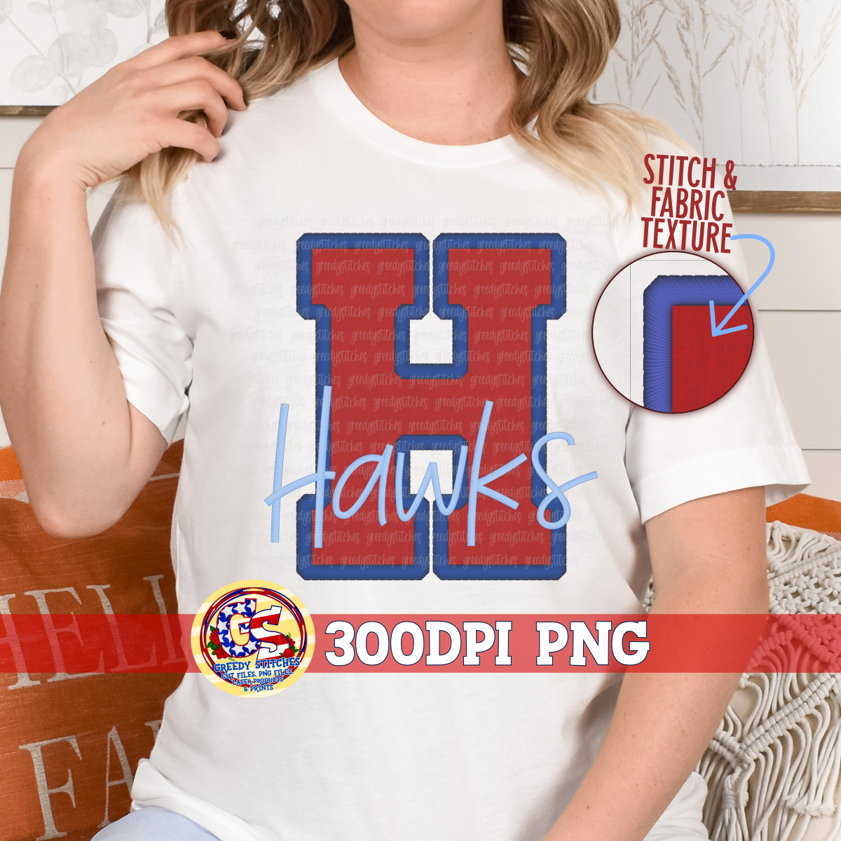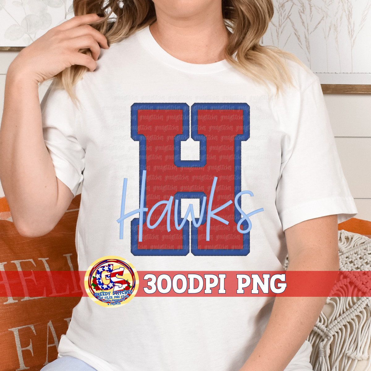 Hancock Hawks Faux Embroidered Varsity Applique PNG for Sublimation