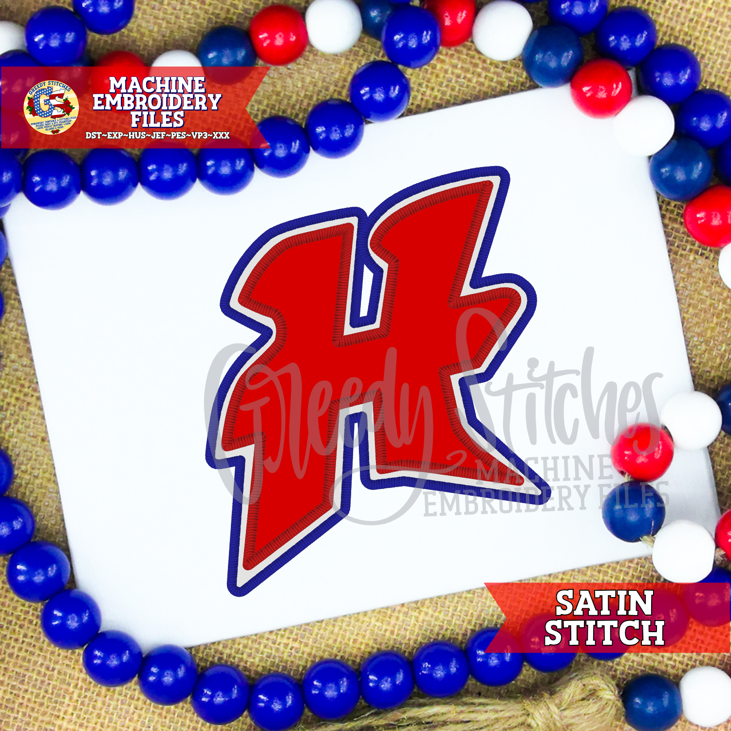 Hancock School District H Satin Stitch Applique Machine Embroidery Design - Hancock High School Hawks
