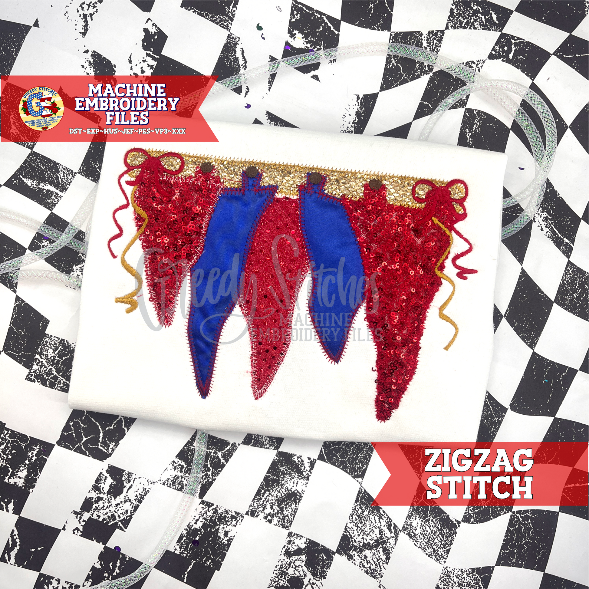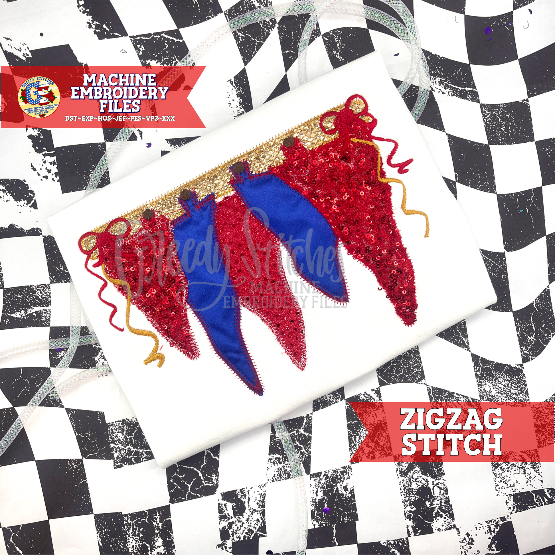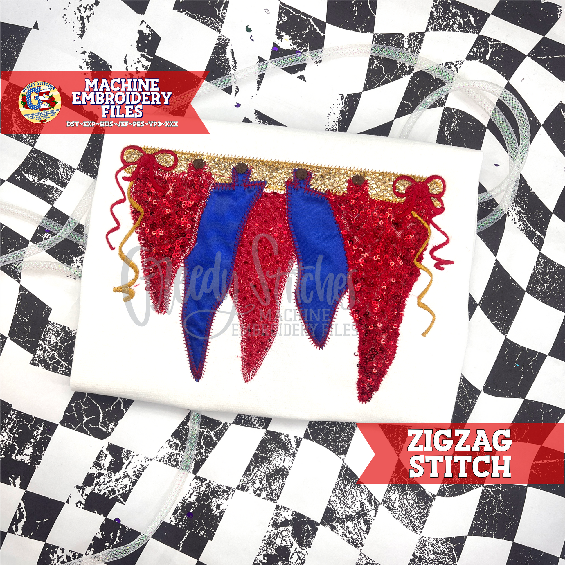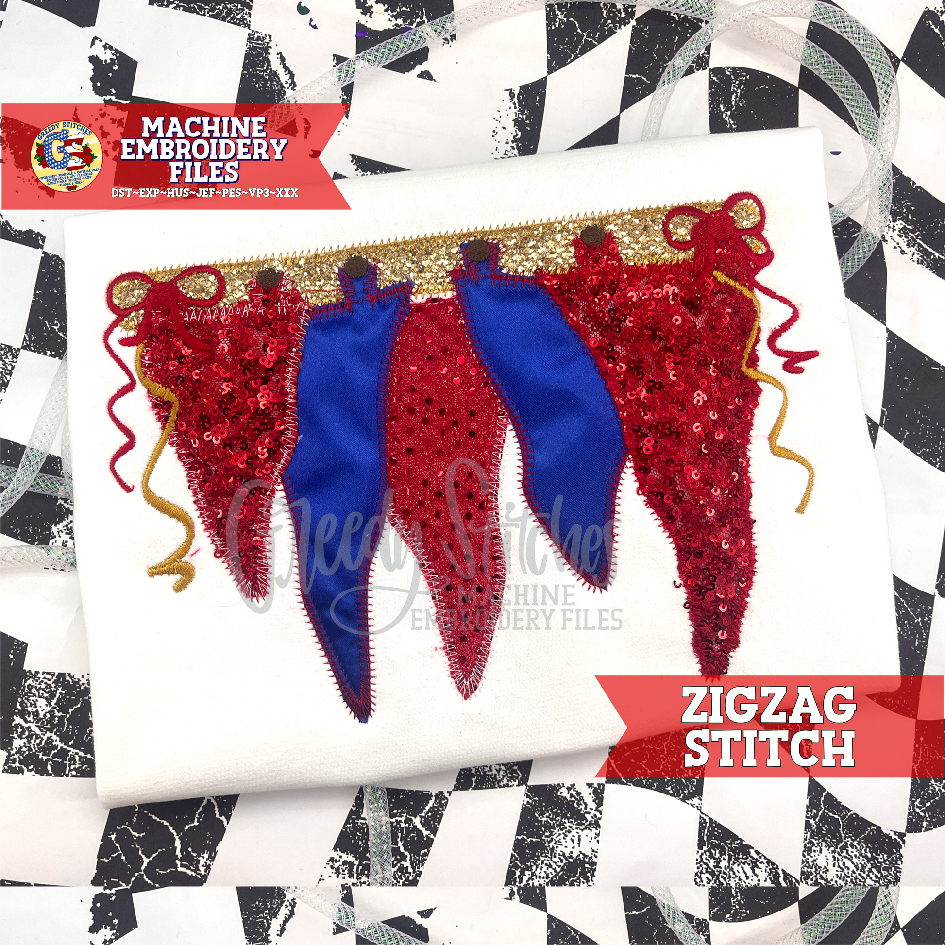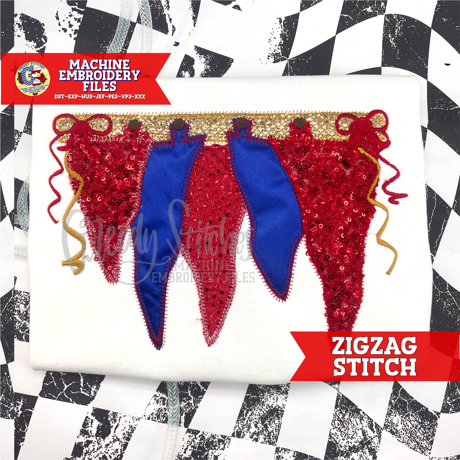 Hanging Pennants Zig Zag Applique Machine Embroidery Design