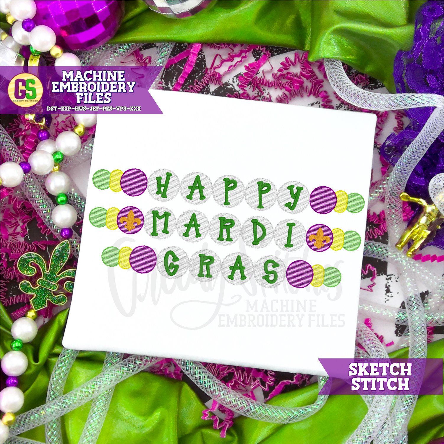 Happy Mardi Gras Friendship Bracelet Sketch - Machine Embroidery