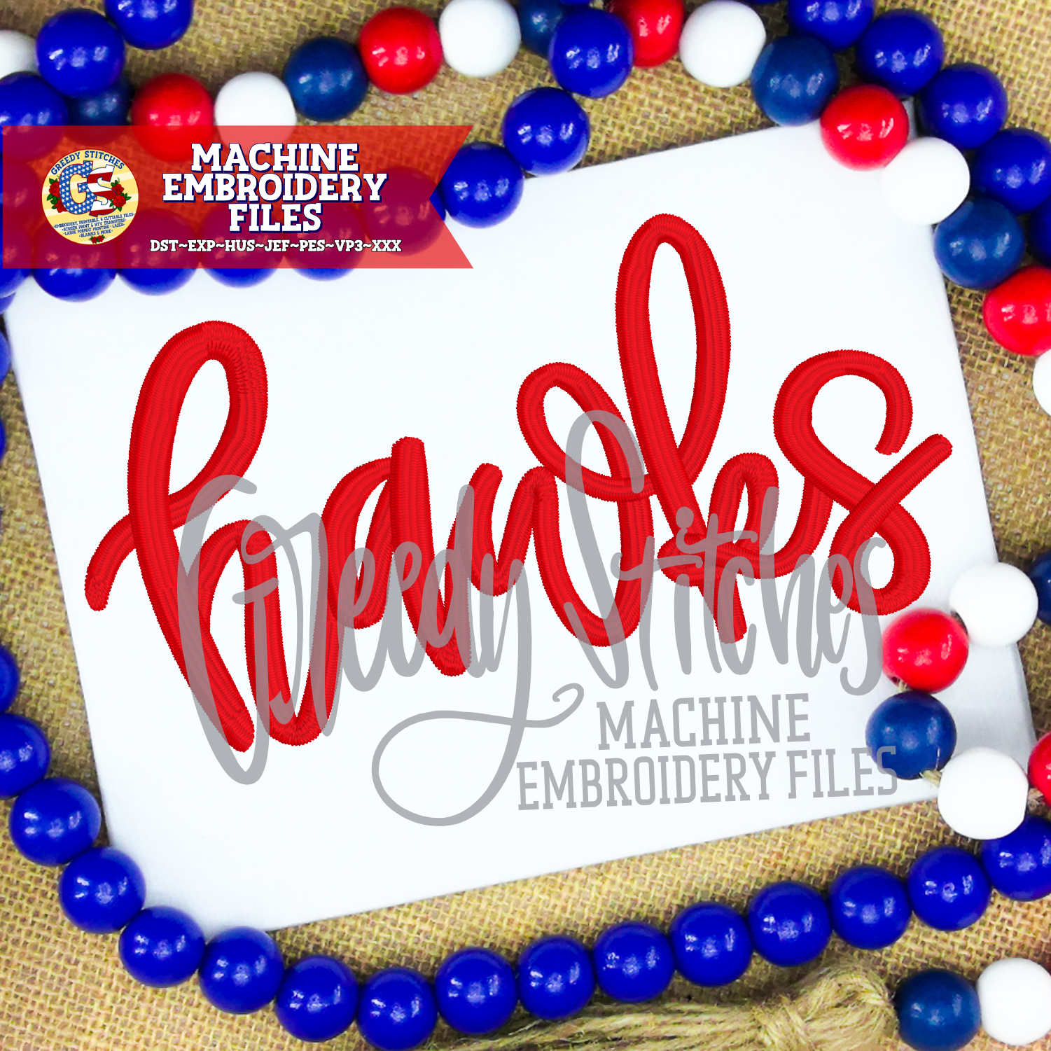 Hand Lettered Hawks Satin Stitch Embroidery Design