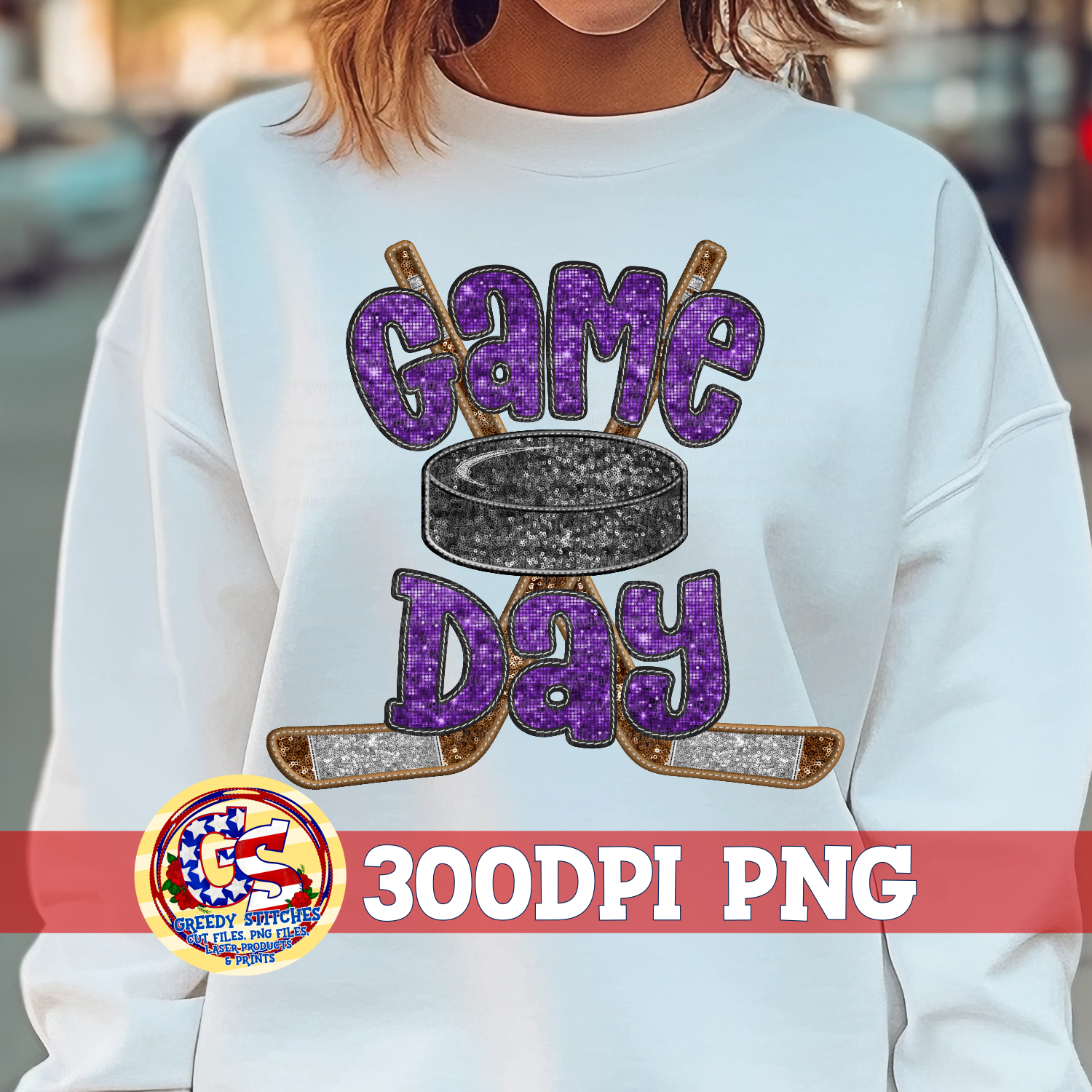Hockey Game Day Purple Faux Embroidery Sequins PNG