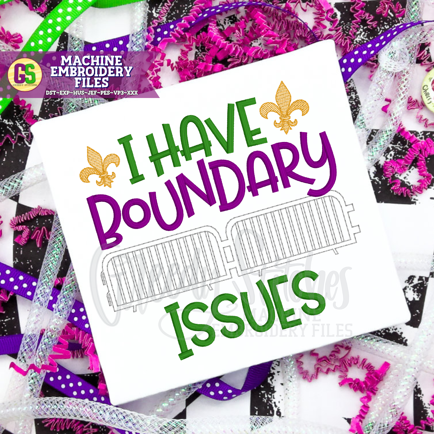 I Have Boundary Issues Machine Embroidery Design - Mardi Gras Embroidery