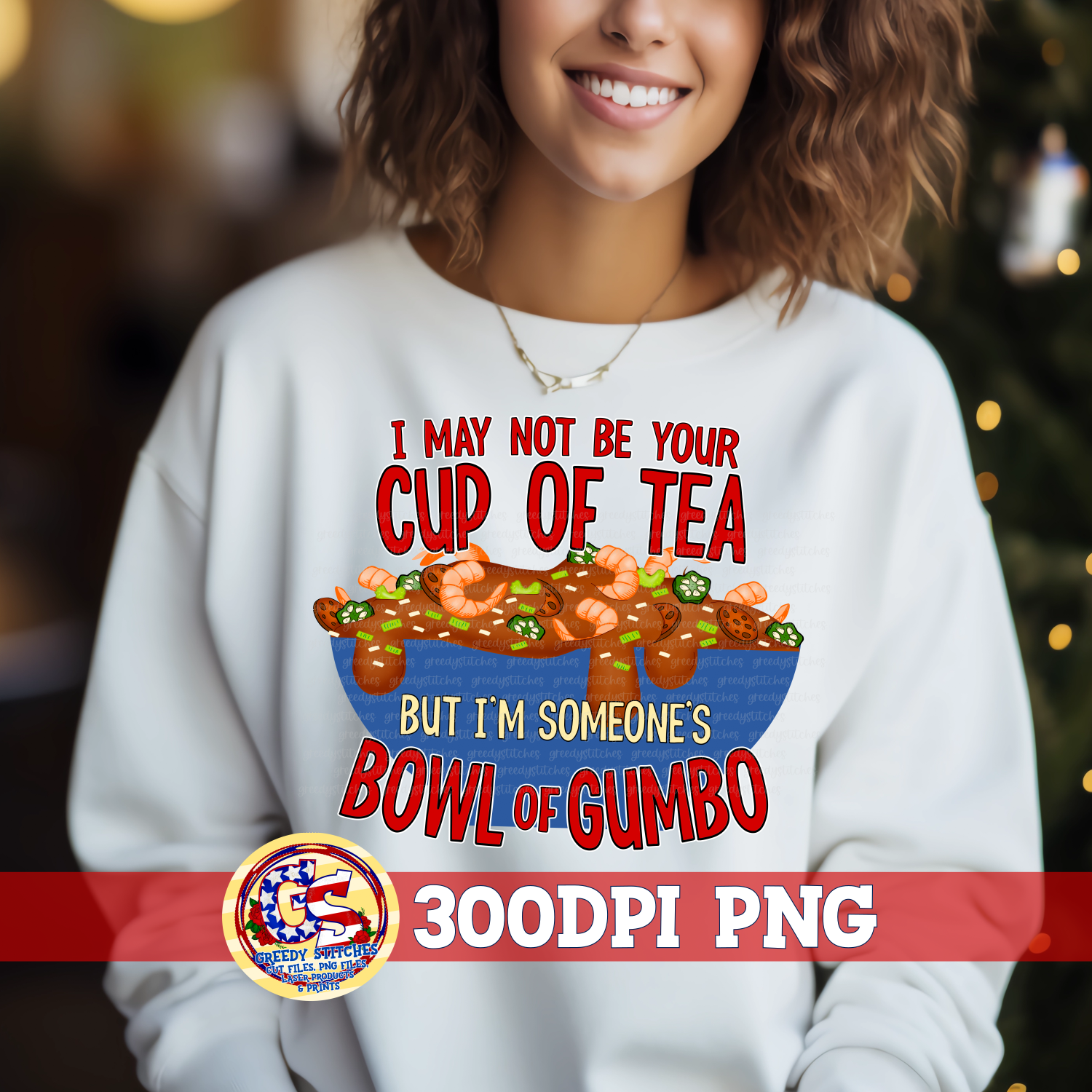 I May Not Be Your Cup of Tea but I'm Someone's Bowl of Gumbo PNG Sublimation