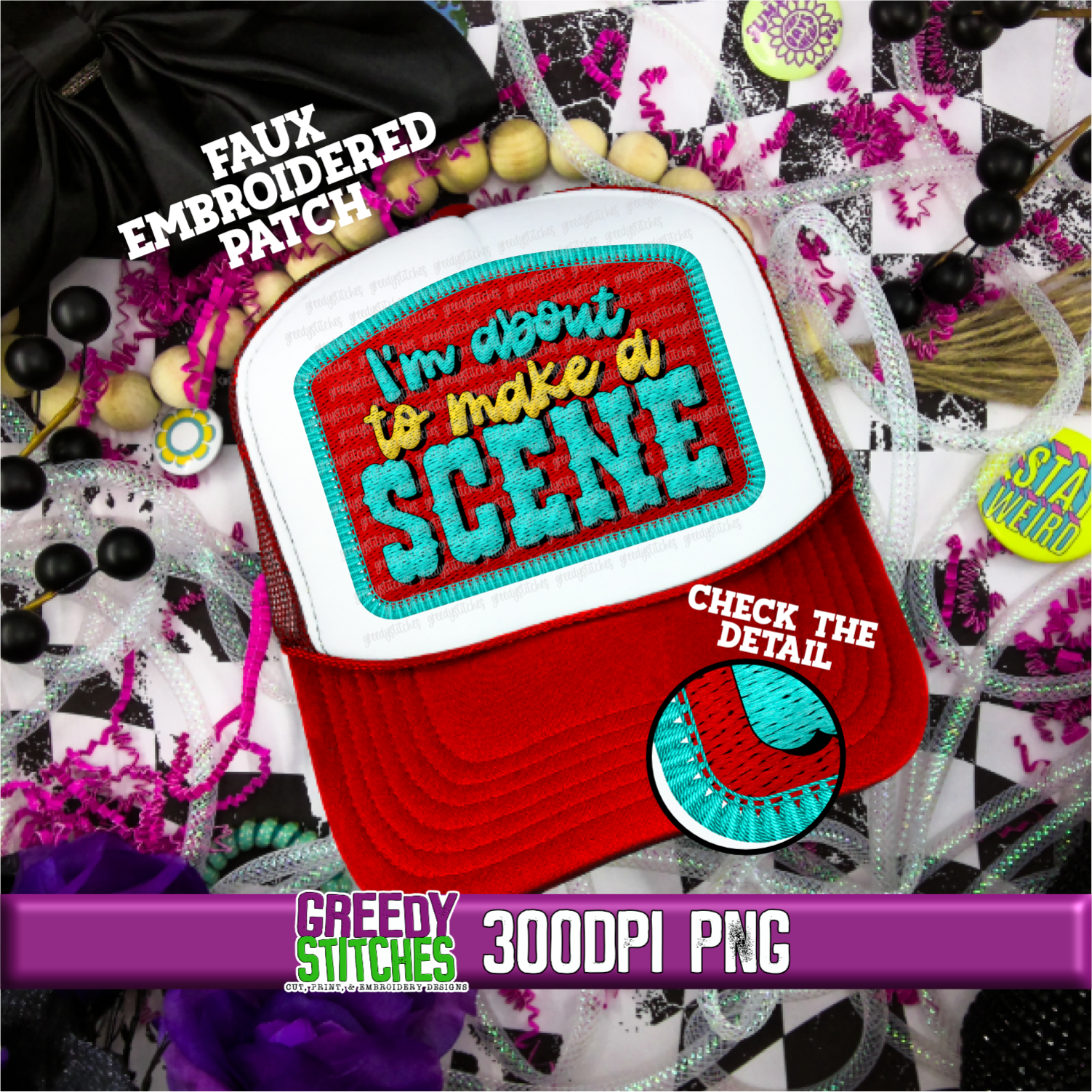 I'm About to Make a Scene PNG - Rude Faux Embroidered Hat Patch