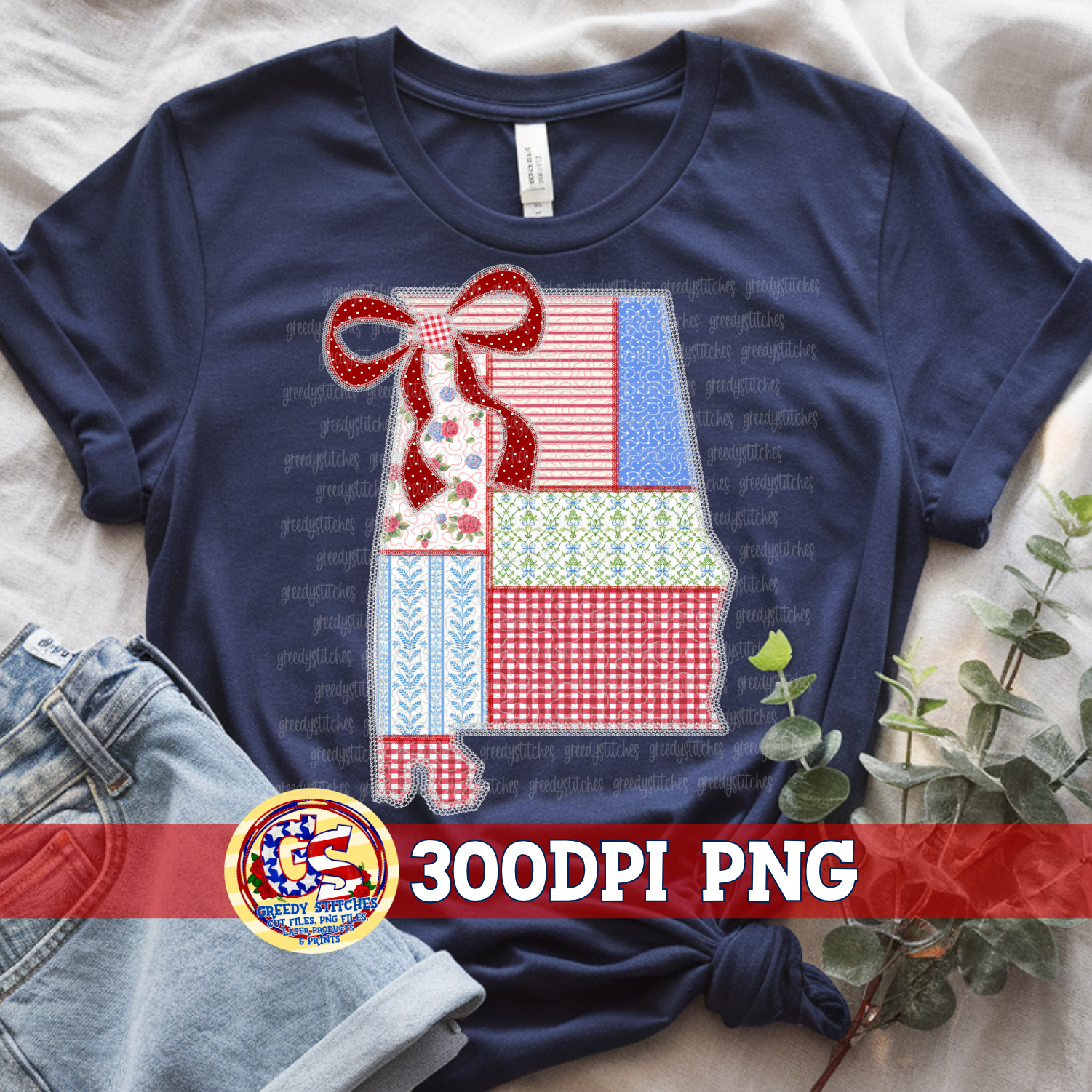July 4th Alabama Faux Quilted & Lace PNG