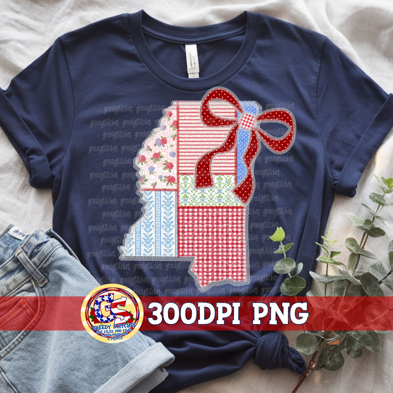 July 4th Mississippi Faux Quilted & Lace PNG