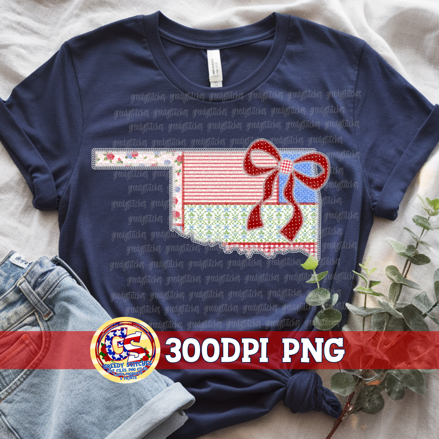 July 4th Oklahoma Faux Quilted and Lace PNG