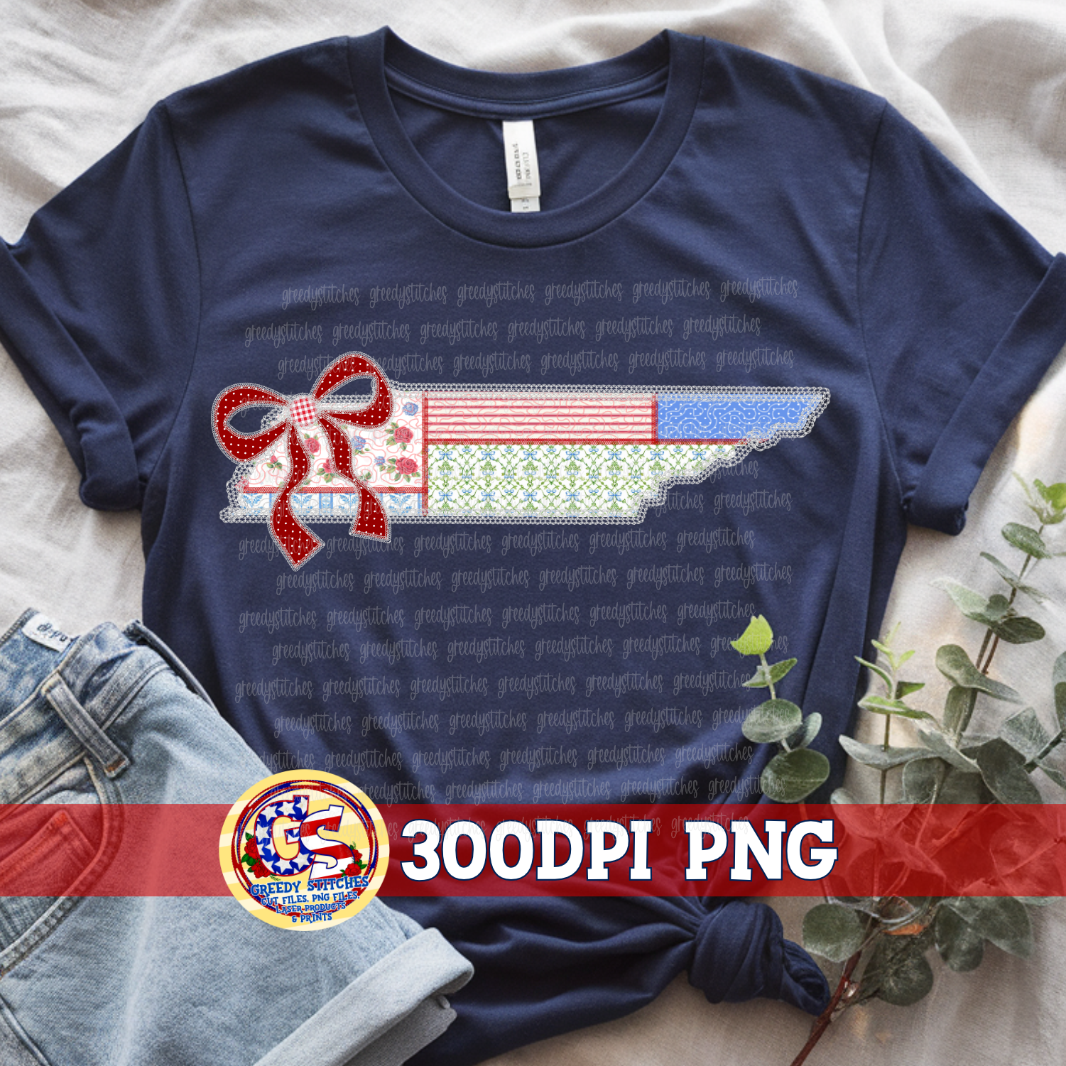 July 4th Tennessee Faux Quilted and Lace PNG