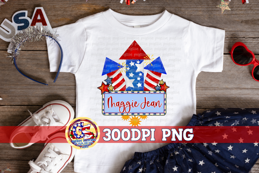 July 4th Firecrackers with Name Box PNG for Sublimation
