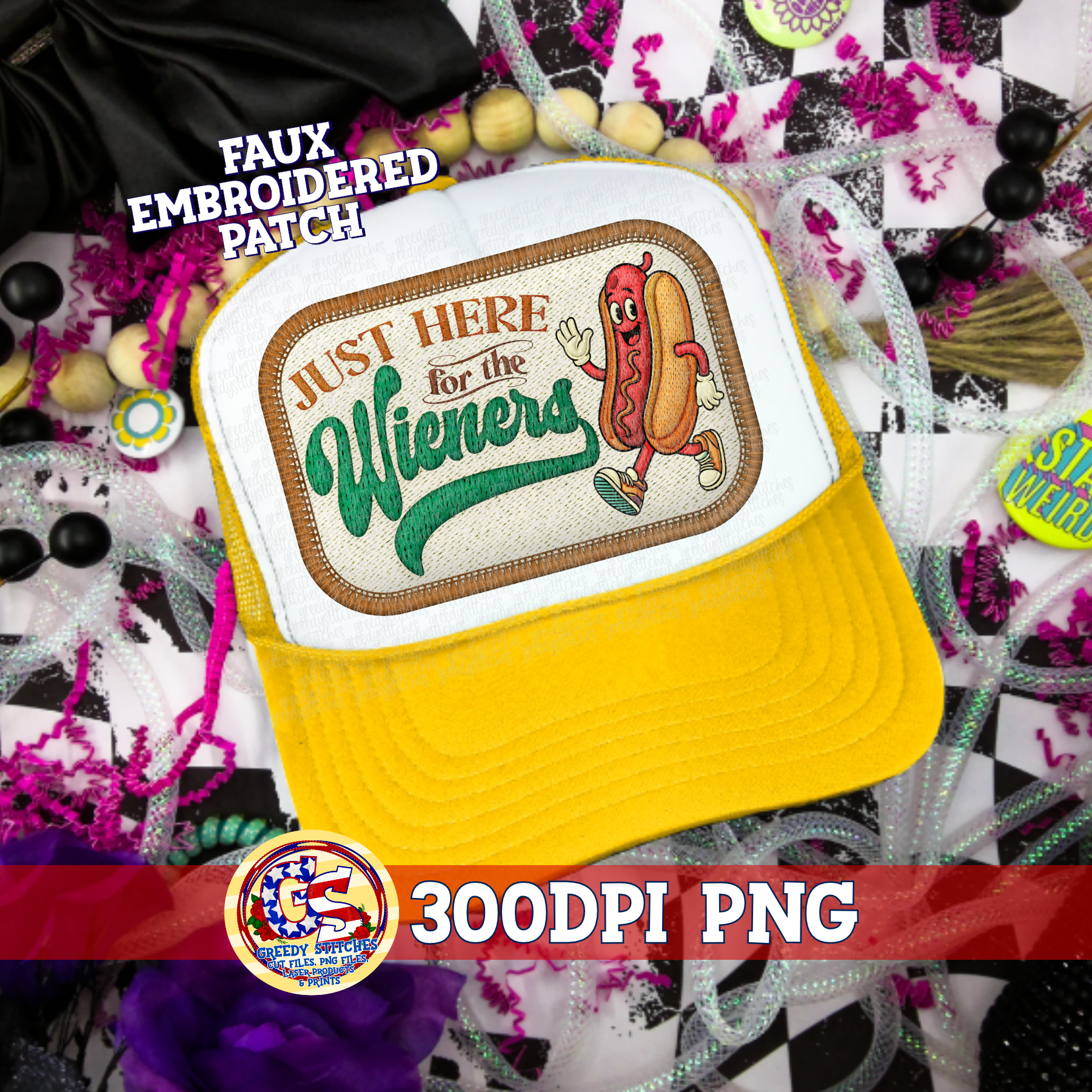Just Here for the Wieners PNG - Faux Embroidered Hat Patch
