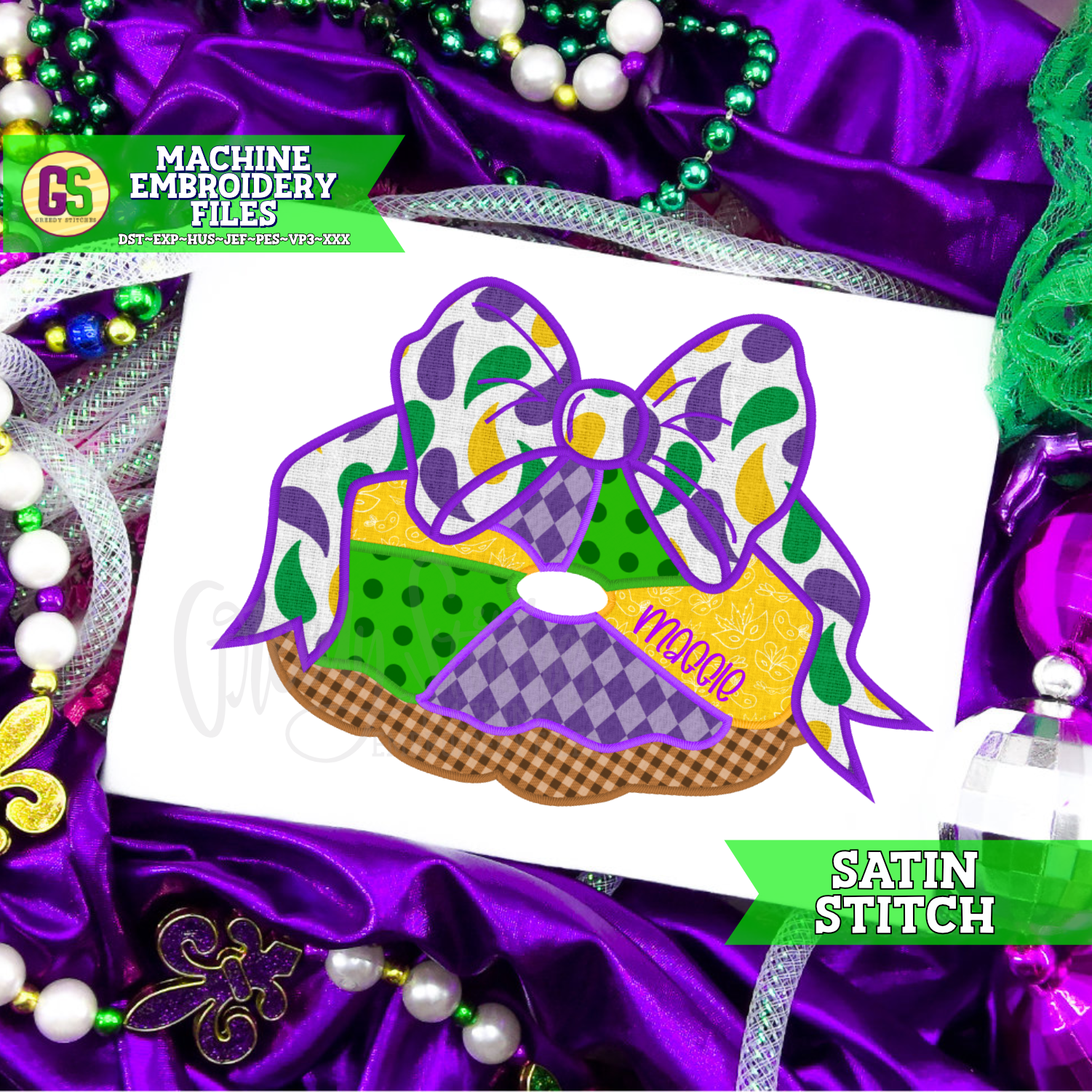 King Cake with Bow Satin Stitch Applique Machine Embroidery Design