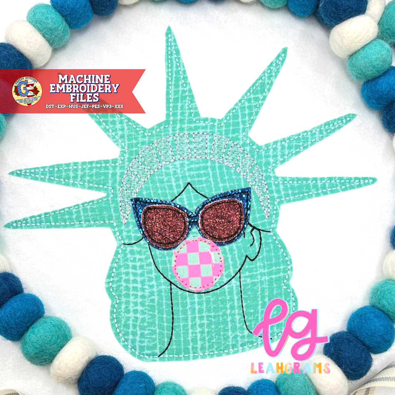Lady Liberty Bubble Gum Sunglasses Bean Stitch Machine Embroidery Design