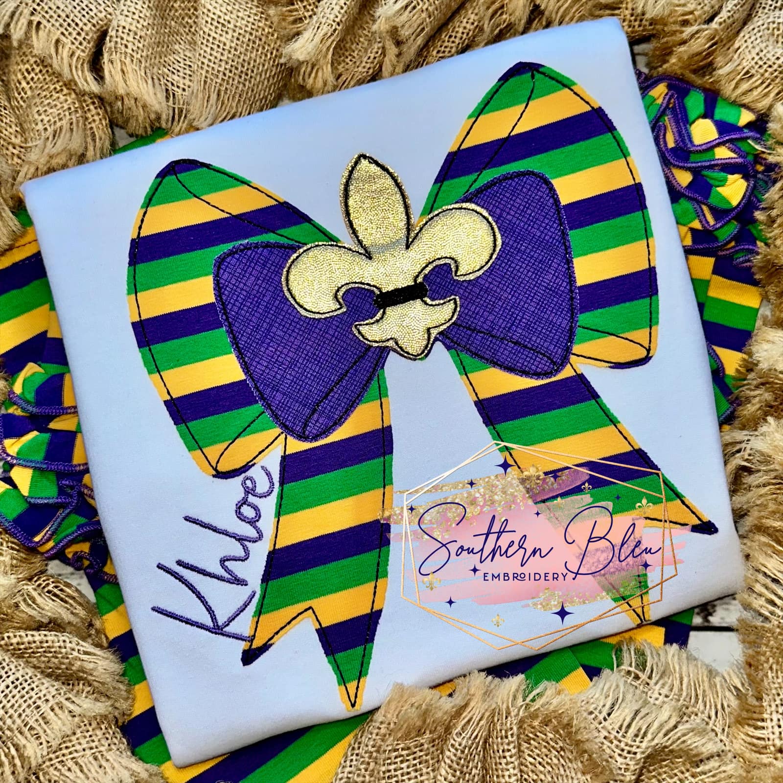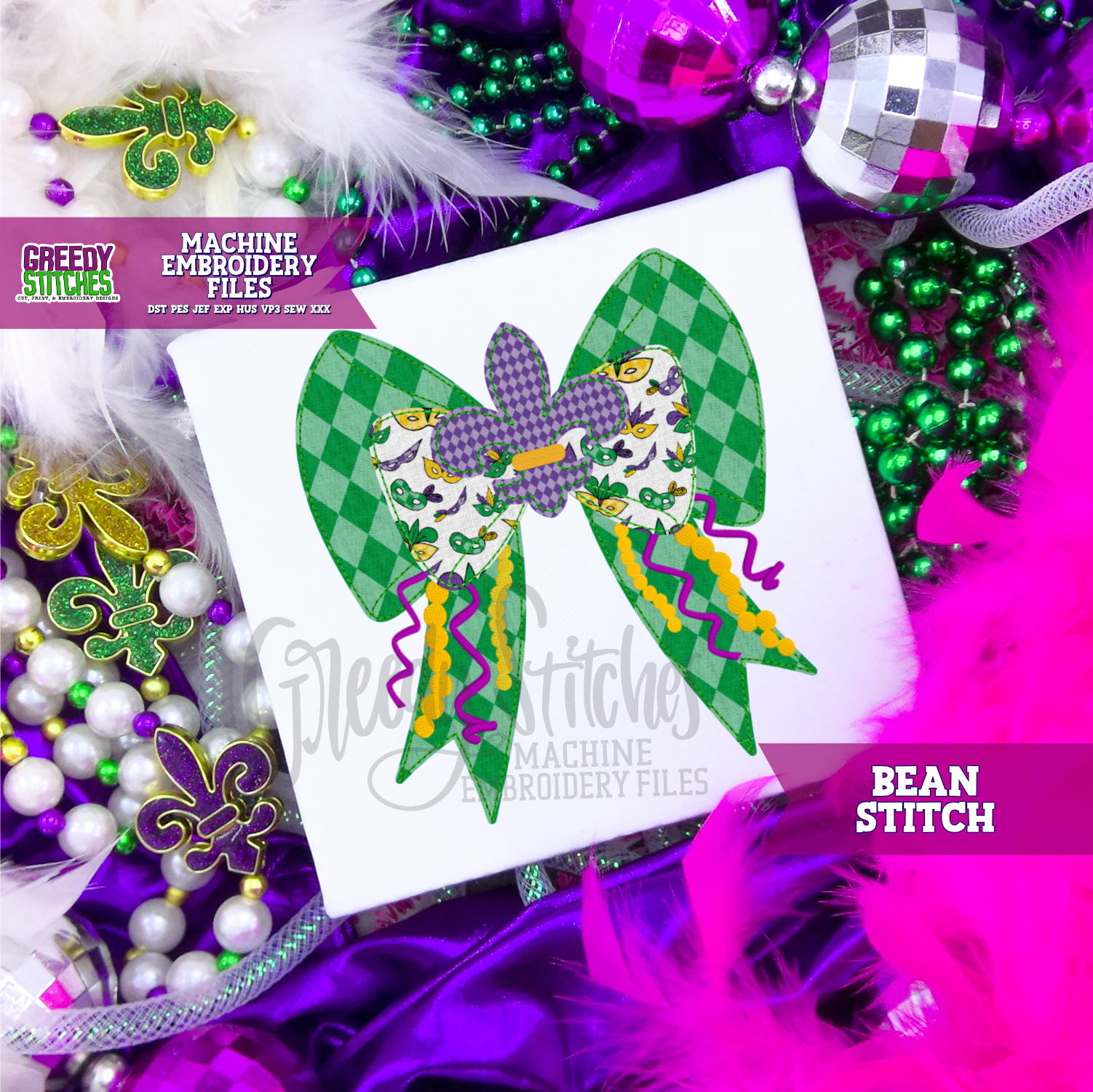 Mardi Gras Coquette Bow Bean Stitch Applique Machine Embroidery Design